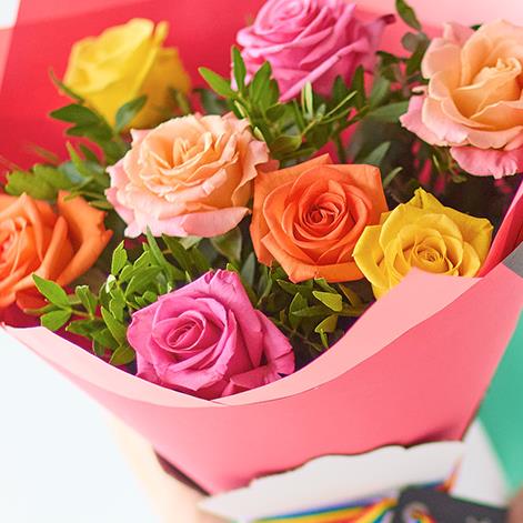 8 large-headed roses in a variety of colours plus co-ordinating foliage.