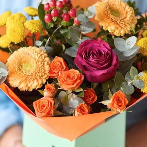 Perfectly formed, this classic autumn gift box will feature gorgeous blooms in bright vibrant shades like cerise and sunshine yellow.