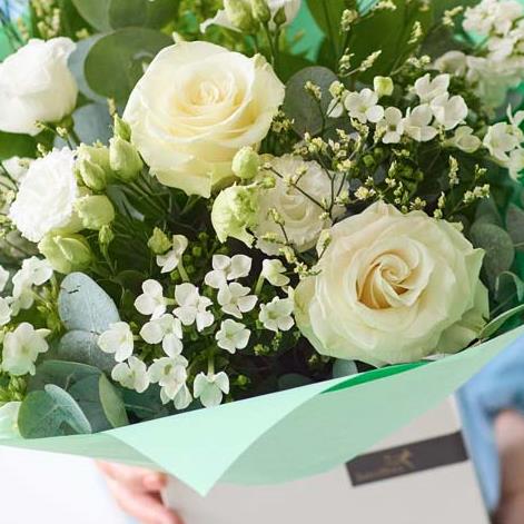 A soothing bouquet of gorgeous neutral flowers, expertly arranged by a skilled local florist. It’ll feature fresh foliage contrasted with cream or white flowers. Exactly which blooms will depend on what’s freshest and the occasion – every bouquet is beautifully unique, made bespoke.