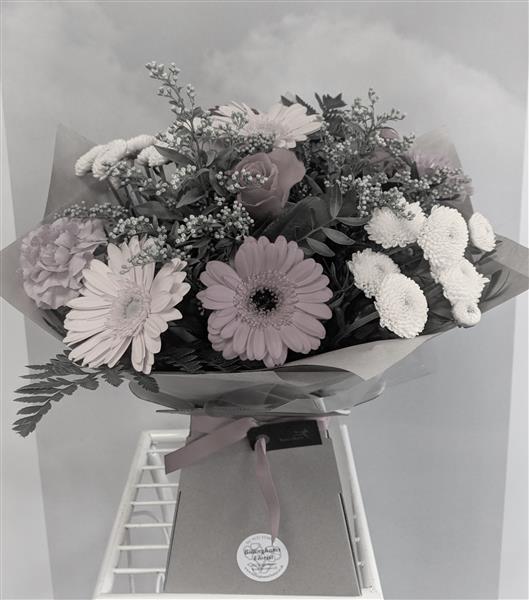 Your florist will select flowers, arrange in a posy style, add gift wrappings and water and present in box.