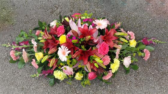 Florists Choice Vibrant Traditional Funeral Spray 1