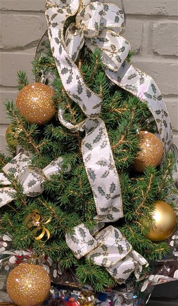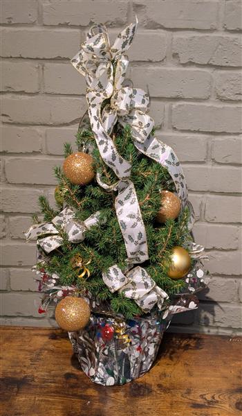This Gift Wrapped potted 65cm Picea Glauca (White Spruce) decorated with baubles & ribbon makes an ideal gift for the season. Once Christmas is over the decorations can be removed and the tree can be planted straight into the garden or an ornamental pot.