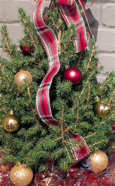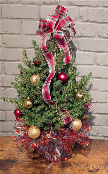 This Gift Wrapped potted 65cm Picea Glauca (White Spruce) decorated with baubles & ribbon makes an ideal gift for the season. Once Christmas is over the decorations can be removed and the tree can be planted straight into the garden or an ornamental pot.