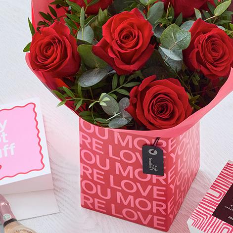 Six luxury red roses, scrummy salted caramel flavour cocoa dusted truffles, delicious mini rosé prosecco (200ml, 10.5% vol) and a lovely card – they'll love this gorgeous gift set (and you!)