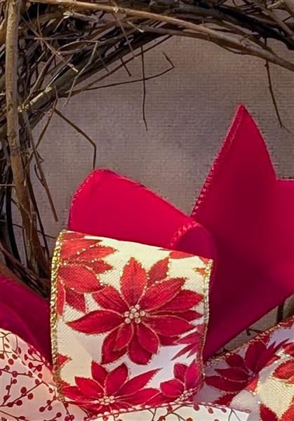 Ribbon Twig Wreath - Poinsettia zoom 2Ribbon Twig Wreath - Poinsettia zoom 3