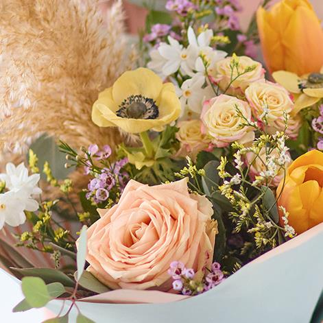 Fresh and dried flowers and foliage in on trend soft, muted tones. Expect blooms in peach, lemon and lilac shades.