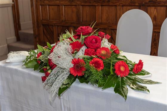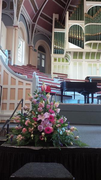 We can create an arrangement for your venue, suitable to sit on a table, stage or pedestal.