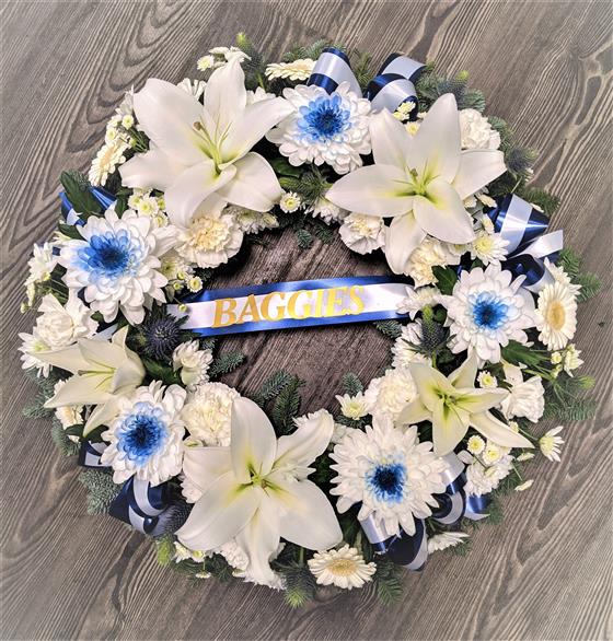 WBA Wreath - this floral tribute can be personalised with word/name of your choice on WBA ribbon